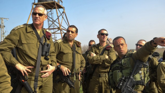 IDF Chief of Staff Benny Gantz (L) seen during a tour in the Golan Heights, February 23, 2014 (photo credit: IDF Spokesperson/Flash90)Iran and its surrogates are ceaselessly attempting to destabilize and compromise Israel’s borders, with the Islamic Republic directly involved in each and every one of the regional conflicts in countries surrounding the Jewish state, IDF Chief of Staff Benny Gantz said Sunday.