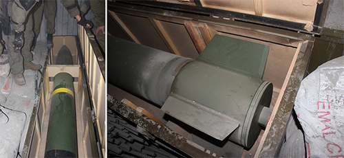 Israeli naval commandos inspect one of the missiles found aboard the Klos-C cargo ship, which was found to be smuggling missiles from Iran to the Gaza strip, via Sudan, March 5, 2014. (Image source: Israel Defense Forces)