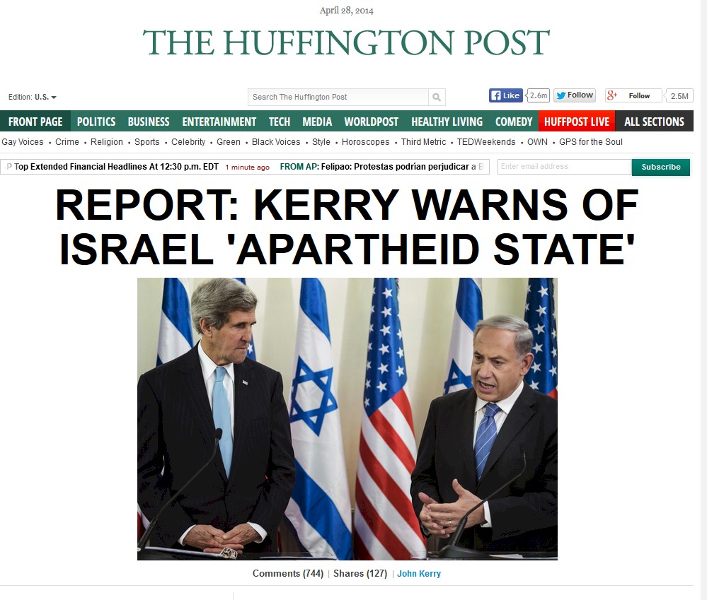 Exclusive: Kerry Warns Israel Could Become ‘An Apartheid State’, Daily Beast, Josh Rogan, April 27, 2014