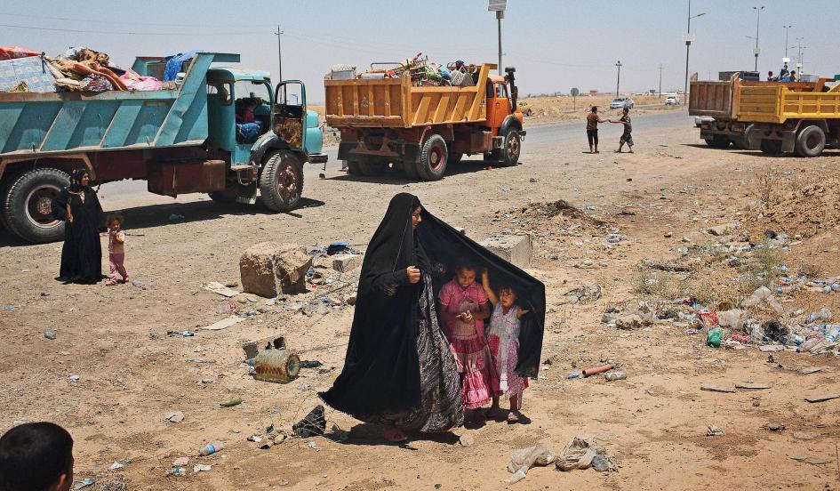 Iraqis, predominantly from Tikrit, parked by the side of the highway after crossing a checkpoint south of Kirkuk into the Kurdish Peshmerga-controlled zone after fleeing Iraqi areas overrun by Jihadists from the Islamic State of Iraq and the Levant (ISIL). Andrew Quilty/Oculi