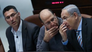 Netanyahu et alBenjamin Netanyahu (right) talks with Moshe Ya’alon (center). (Photo credit: Yonatan Sindel/Flash90)
