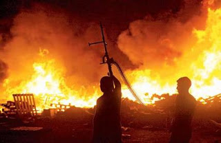 Kfar Darom being burned by its new occupants