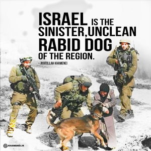 Tweet from Iranian Ayatollah Khamenei: “#Israel, sinister filthy rabid dog in the region, is a threat to the world. 11/2/13 Zionism is The Real Terrorism #Gaza.”