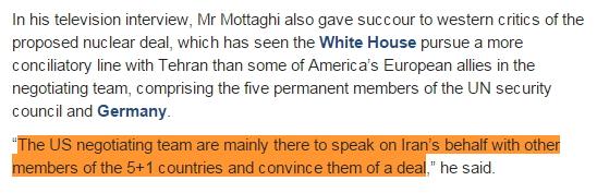 “The U.S. negotiating team are mainly there to speak on Iran’s behalf with other members of the 5+1 countries and convince them of a deal,” Motaghi told a TV station after just defecting from the Iranian delegation while abroad for the nuclear talks. The P 5 + 1 is made up of United States, United Kingdom, Russia, China, France, plus Germany.