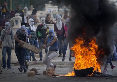 Palestinians improvise a barricade during clashes with Israeli troops near Ramallah, West Bank, Saturday, Oct. 10 / AP