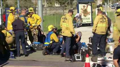 All three were loaded down with automatic rifles and pistols. Since Wednesday night bomb squads have been working on defusing three explosive devices left in one of the three buildings of the San Bernadino center after the shooting.