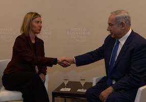 Before his meeting with Mogherini, Netanyahu – during a public interview with CNN’s Fareed Zakaria on center stage at the World Economic Forum – said he hoped that EU policy vis-à-vis Israel and the Palestinians would “merely reflect now the prevailing Arab policy to Israel and the Palestinians.
