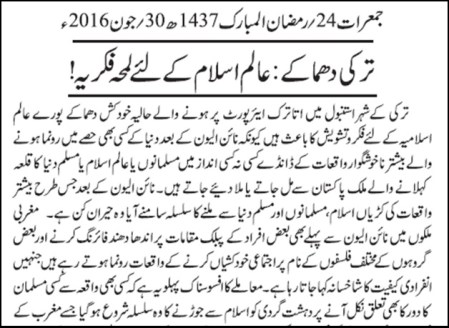 Pakistan’s Largest Urdu Daily Blames Istanbul Attacks On The West, Claims NATO Secretary-General Had Declared Islam As The Next Target After The Defeat Of Communism » 28880