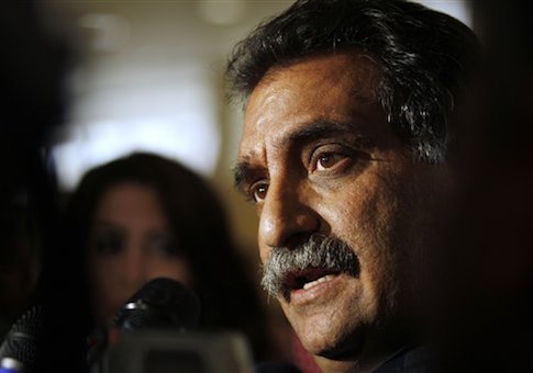 Azmi Bishara, an Israeli Arab and former lawmaker, speaks with journalists as he arrives to attend the emergency Arab leaders summit on Gaza in Doha, Qatar, Friday, Jan. 16, 2009. (AP Photo/Hassan Ammar)