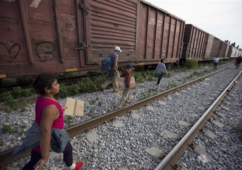 FILE – In this July 12, 2014 file photo, migrants walk along the rail tracks after getting off a train during their journey toward the U.S.-Mexico border in Ixtepec, Mexico. Many of the immigrants recently flooding the nationís southern border say theyíre fleeing violent gangs in Central America. These gangs were a byproduct of U.S. immigration and Cold War policies, specifically growing from the increase in deportations in the 1990s. With weak dysfunctional governments at home, U.S. street gang culture easily took hold and flourished in these countries. (AP Photo/Eduardo Verdugo)