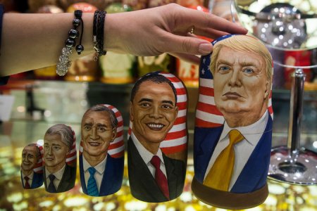 Traditional Russian dolls, called matryoshkas, depicting, from left, Presidents George Bush, Bill Clinton, George W. Bush and Barack Obama and the president-elect, Donald J. Trump, in a shop in Moscow.Credit Pavel Golovkin/Associated Press