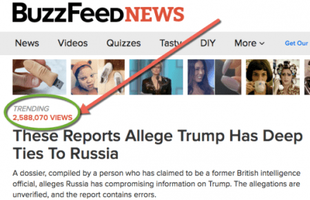Its editor-in-chief Ben Smith published a memo explaining that decision, saying that—- although there “is serious reason to doubt the allegations” — Buzzfeed in general “errs on the side of publication” and “Americans can make up their own minds about the allegations.” Publishing this document predictably produced massive traffic (and thus profit) for the site, with millions of people viewing the article and presumably reading the “dossier.”