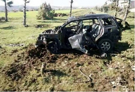 The destroyed vehicle of Yasser al-Sayed