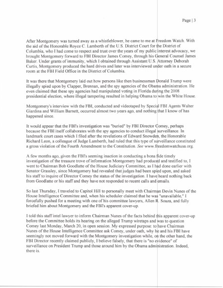 Letter from Freedom Watch to House Intelligence Committee re possible cover-up of illegal NSA/CIA surveillance of Trump and others » Freedomwatch3