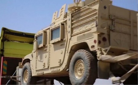 US armored Humvees driving this week from Iraqi Kurdistan to Syria