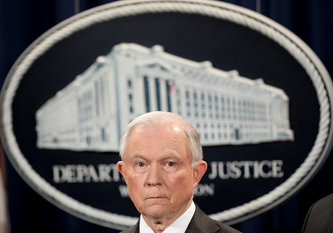 WASHINGTON, DC – MAY 12: U.S. Attorney General Jeff Sessions speaks during an event at the Justice Department May 12, 2017 in Washington, DC. Sessions was presented with an award “honoring his support of law enforcement” by the Sergeants Benevolent Association of New York City during the event, but did not comment on recent events surrounding the firing of FBI Director James Comey. (Photo by Win McNamee/Getty Images)