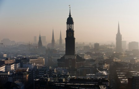 HAMBURG, GERMANY – FEBRUARY 15: A view of the city of Hamburg with the ‘St. Michaelis Church’ on February 15, 2017 in Hamburg, Germany. According to recent statistics German exports climbed by 1.2 percent in 2016 to EUR 1.2 trillion, giving Germany a EUR 253 billion trade surplus. The new U.S. administration of President Donald Trump has criticized the surplus, claiming that Germany’s economic success is buoyed by a weak Euro, and has threatened counter-measures including tariffs that many in Germany fear could lead to a trade war. (Photo by Morris MacMatzen/Getty Images)