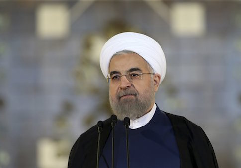 Iran’s President Hassan Rouhani addresses the nation in a televised speech after a nuclear agreement was announced in Vienna, in Tehran, Iran, Tuesday, July 14, 2015. Rouhani said “a new chapter” has begun in his nation’s relations with the world. He maintained that Iran had never sought to build a bomb, an assertion the U.S. and its partners have long disputed. (AP Photo/Ebrahim Noroozi)