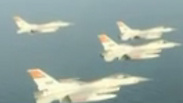 Egyptian military footage of pilots being briefed and war planes taking off was shown on state television.