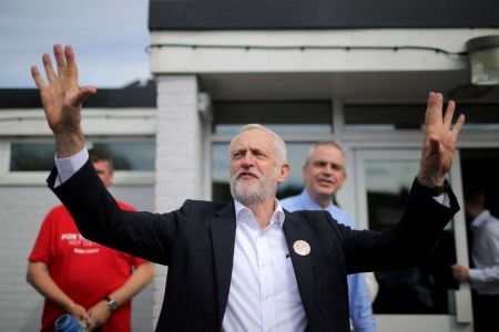 NOTTINGHAM, ENGLAND – JUNE 03: Labour leader Jeremy Corbyn greets supporters at Beeston Youth and Community Centre he visits the East Midlands during the final weekend of the General Election campaign on June 3, 2017 in Nottingham, England. If elected in next week’s general election Mr Corbyn is pledging to create a million new jobs and to scrap zero-hours contracts. (Photo by Christopher Furlong/Getty Images)