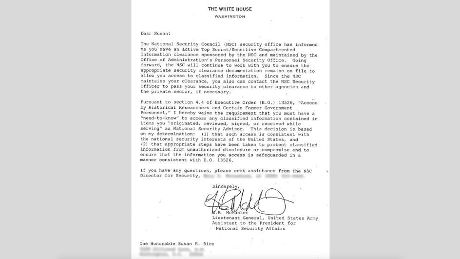 A letter from H.R. McMaster said Susan Rice will keep her top-secret security clearance » download (2)