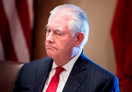 US Secretary of State Rex Tillerson waits for a luncheon with Kuwait’s Emir Sheikh Sabah al-Ahmad Al-Sabah in the Cabinet Room of the White House September 7, 2017 in Washington, DC. / AFP PHOTO / Brendan Smialowski (Photo credit should read BRENDAN SMIALOWSKI/AFP/Getty Images)