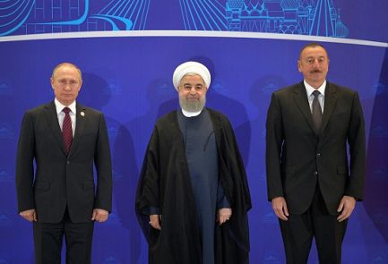 ![]() Russian President Vladimir Putin, Iranian President Hassan Rouhani and Azerbaijan’s President Ilham Aliyev in Tehran, Wednesday | Photo: EPA