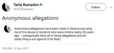 Tariq Ramadan’s Fans Insist He’s Not A Rapist: It’s The Women’s Fault. And the Jews’ » 3124