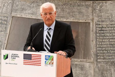 US ambassador to Israel David Friedman speaks during the 16th anniversary memorial ceremony for the victims of 9/11attacks in a Memorial monument in Jerusalem Hills on September 11 2017. Photo by Matty Stern/U.S. Embassy Tel Aviv *** Local Caption *** ?????