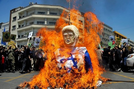 Marchers burned Israeli and American flags, as well as effigies of U.S. President Donald Trump. In Tehran, an effigy of Trump draped in an Israeli flag was torched as protesters chanted “Death to Israel” and “Death to America.”