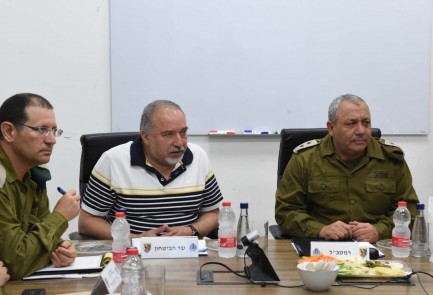 Defense Minister Avigdor Lieberman and IDF Chief Lt. Gen. Gadi Eizenkot at the Gaza Division base, Monday