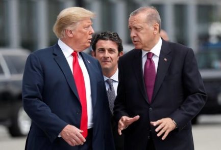 U.S. President Donald Trump and Turkish President Recep Tayyip Erdogan at a NATO summit, July 11
