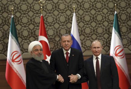 Iranian President Hassan Rouhani, Russian President Vladimir Putin and Turkish President Recep Tayyip Erdogan in Ankara in April