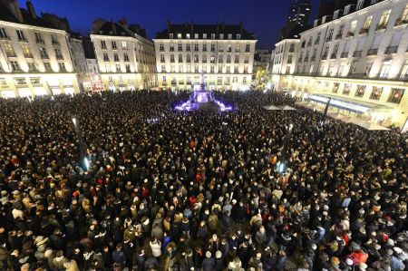 Thousands gather in Natnes, France, on Jan. 7, 2015, in a rally at the Place Royale to pay tribute to those injured and killed in an attack in Paris. France, Germany and several other countries, including the U.S. and Israel, are worried that Iran is planning new terrorist attacks in Europe.