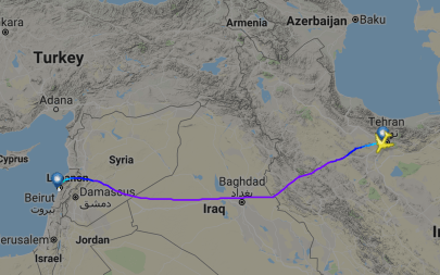 According to publicly available flight data, Fars Air Qeshm flight No. QFZ-9964 left Tehran shortly after 8:00 a.m., flew over Iraq, cut northwest into Syria and then landed in Beirut’s Rafik Hariri International Airport some two hours later.