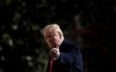 In this photo from November 29, 2018, US President Donald Trump points to the press while walking to Marine One on the South Lawn of the White House. (Brendan Smialowski/AFP)