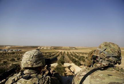 U.S. troops in northern Syria look toward the border with Turkey, an Iranian ally