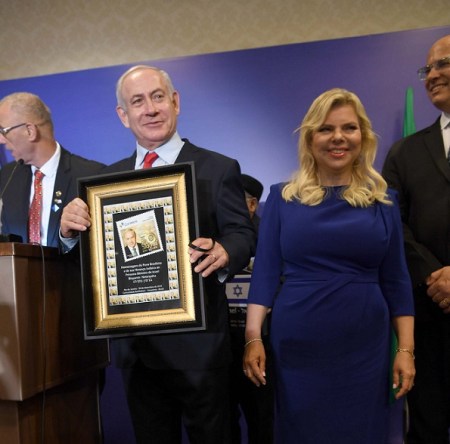 In a meeting with evangelical Christians later that day, Netanyahu was presented with a framed copy of a commemorative stamp issued by the post office in Manaus, the capital of the Brazilian state of Amazonas, in honor of 70 years of Israel’s independence. The stamp had been prepared by the Christian Friends of Israel’s Manaus branch.