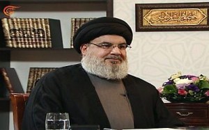 Hezbollah terror group leader Hassan Nasrallah is interviewed on the al-Mayadeen Lebanese television channel, January 26, 2019 (Screen capture)