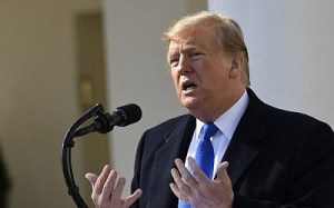 US President Donald Trump speaks during an event in the Rose Garden at the White House, February 15, 2019, in Washington. (AP Photo/Susan Walsh)