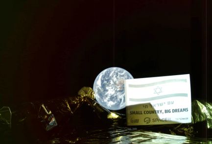 Organizers for the privately funded mission released the photo Tuesday showing Beresheet, Hebrew for Genesis, orbiting some 23,400 miles (37,600 kilometers) away, with the entire Earth as the stunning Apollo-style backdrop. A plaque bearing the Israeli national flag reads, in English, “Small Country, Big Dreams,” and, in Hebrew, “Am Israel hai” (the people of Israel lives).