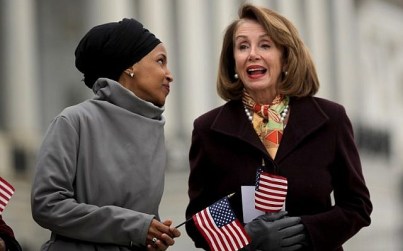 Democratic Represetnative Alexandria Ocasio-Cortez of New York, left, and Democratic Representative Ilhan Omar of Minnesota, center, walk down the House steps to take a group photograph of the House Democratic women members of the 116th Congress on the East Front Capitol Plaza on Capitol Hill in Washington, January 4, 2019, as the 116th Congress began. (AP Photo/Andrew Harnik)