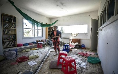 At least two rockets landed outside schools in southern Israel, which were empty due to the weekend, damaging the buildings.
