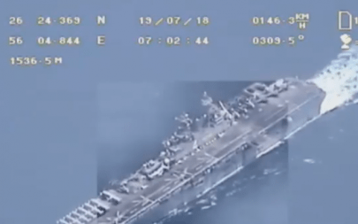 Footage Iran says was taken by one of its drones after the US claimed to have brought it down in the Strait of Hormuz, July 19, 2019 (video screenshot)
