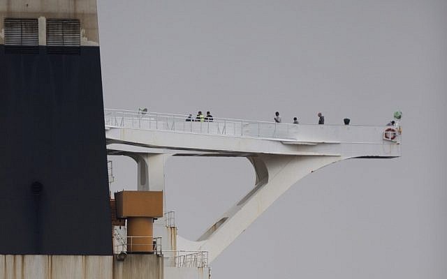 Crew members walk on board supertanker Grace 1 off the coast of Gibraltar on July 6, 2019 (JORGE GUERRERO / AFP)