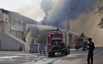 In Israel, a rocket struck a factory in the town of Sderot, northeast of Gaza, causing a large fire that threatened to collapse the building, the local fire department said.