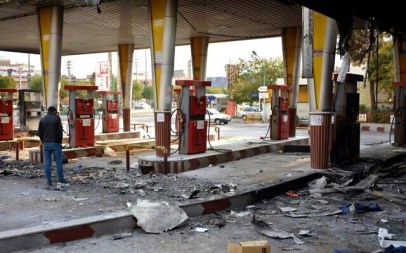 AFP journalists saw two petrol stations in Tehran gutted by fire and damage to infrastructure, including a police station.