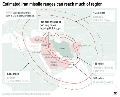 The Iranians fired 15 missiles Wednesday, two U.S. officials said. Ten hit Ain al-Asad and one targeted a base in Irbil in Iraq’s semi-autonomous Kurdish region. Four failed, said the officials, who were not authorized to speak publicly about a military operation.
