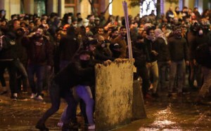 Close to the parliament building, protesters attempted to rip down barbed wire and throw stones at police, who responded with tear gas and water cannon, an AFP journalist witnessed.