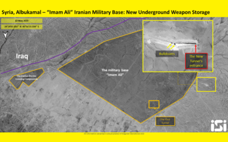 In May, private Israeli satellite imagery analysis firm ImageSat International released photos it said showed that Iran was constructing a new underground weapons storage facility at the Imam Ali base in the al-Bukamal region of Syria, which is believed to be run by Iranian forces.